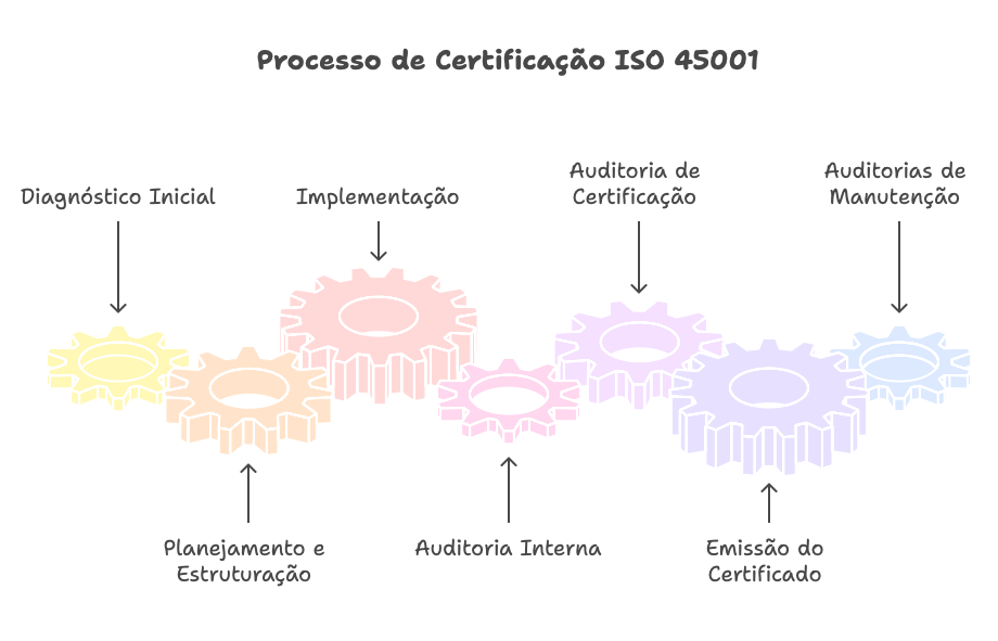 Para obter a certificação ISO 45001, as organizações geralmente seguem as etapas: