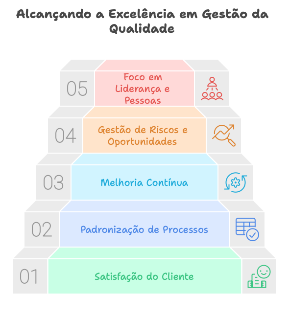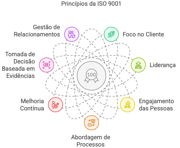 A ISO 9001 se fundamenta em sete princípios amplamente reconhecidos no campo da Qualidade: