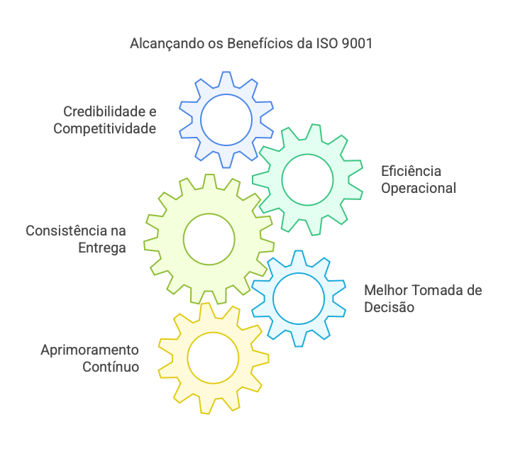 A certificação ISO 9001 é reconhecida mundialmente, agregando valor à imagem da organização.