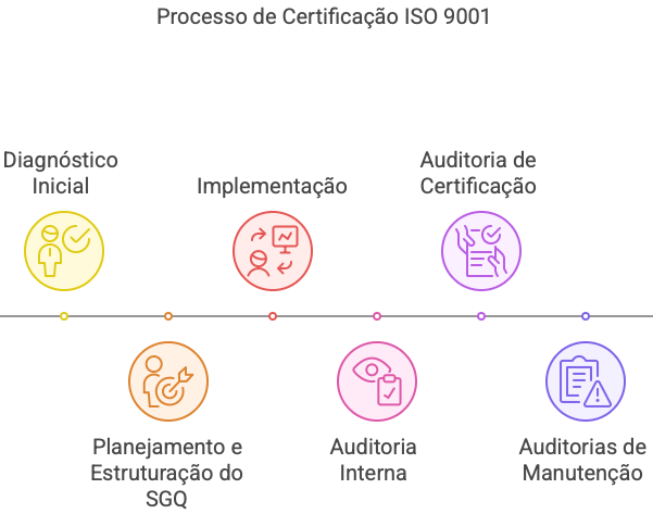 Para obter a certificação ISO 9001, as organizações geralmente seguem as etapas: