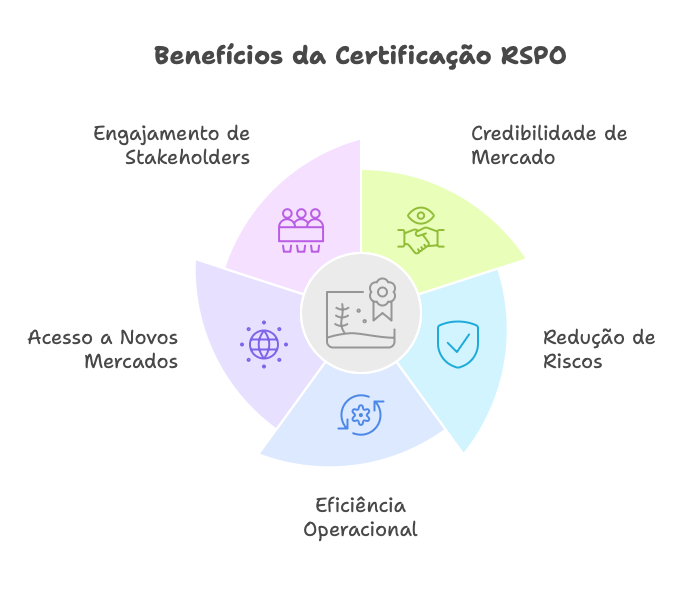 Seguir os princípios da RSPO diminui a exposição a riscos legais e reputacionais, sobretudo em temas como desmatamento, trabalho escravo e conflitos com comunidades.